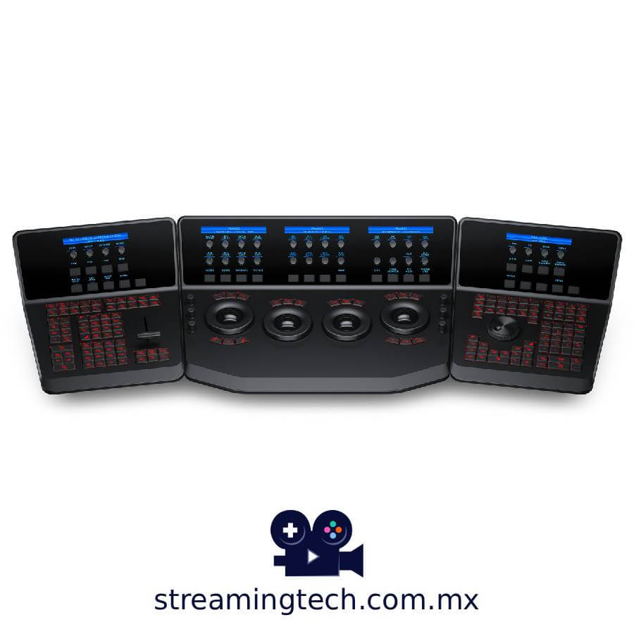 El DaVinci Resolve Advanced Panel de Blackmagic Design representa un gran salto en funcionalidad respecto al panel Micro o Mini. Está compuesto por una consola principal y dos consolas auxiliares, una a cada lado, además de un teclado deslizable en la consola central. Permite acceso con un solo toque a prácticamente todos los controles y parámetros dentro del software DaVinci Resolve.