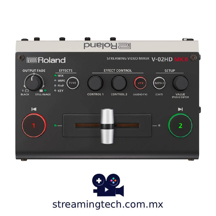 Déjate de cámaras web y sube el nivel de tus livestreamings con el mezclador de vídeo para streaming Roland V-02HD MK II. Este equipo de sobremesa, compacto, asequible y fácil de usar, te permite conectar y conmutar dos cámaras HDMI de alta calidad y enviarlas directamente a tu plataforma de streaming favorita por USB-C. También puedes mezclar fuentes de audio mediante entradas específicas y HDMI, aplicar efectos de vídeo y transiciones, etc. Con el V-02HD MK II, tienes la interfaz que necesitas para hacer producciones de vídeo en vivo de alta calidad.